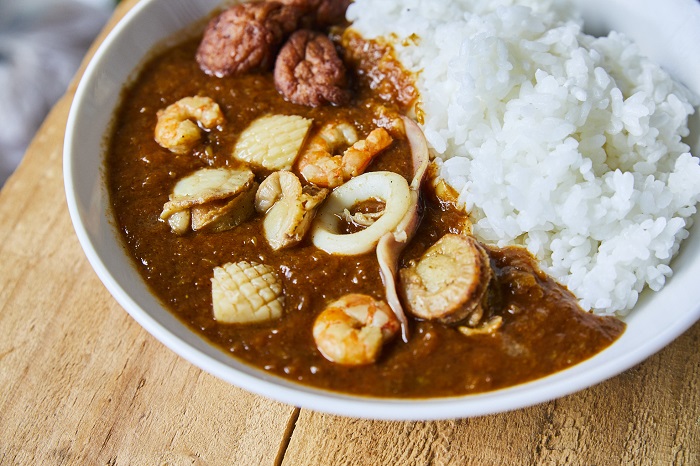 最後に訪ねたのが日本食品工業でのカレー作りです。大地を守る会の調味料を代表する「みのり醤油」の生産者が作るいわば〝醤油屋のカレー〞。2回の夏を越えて長期熟成される醤油のうまみがきいて、皆さんに30年来愛されているルウです。