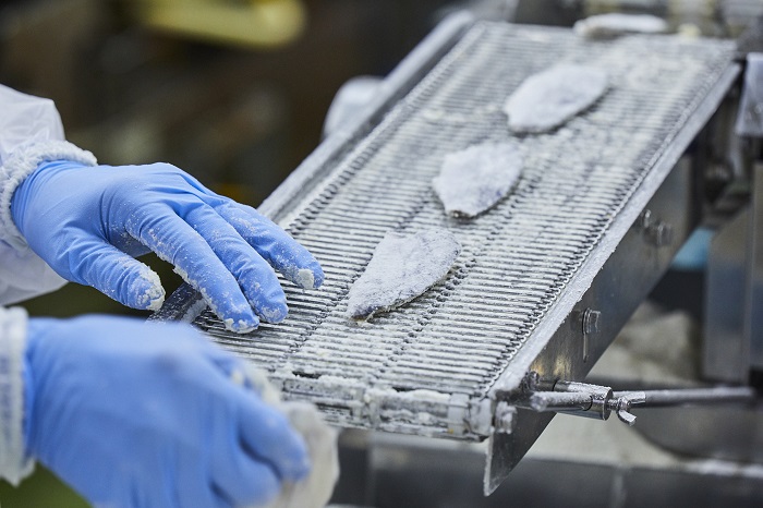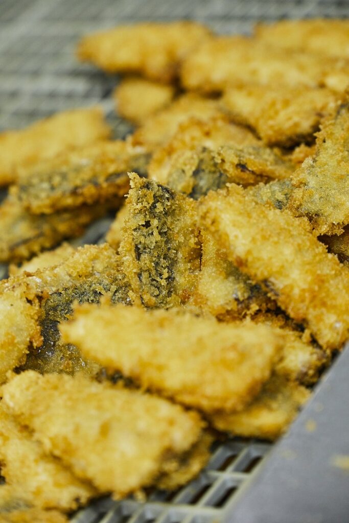 次に足を運んだのが、小倉水産食品。見せてくれたのは「あたためるだけ 境港のあじフライ」の工程です。この商品のおかげで、家でフライを作らなくなったという方も多いのではないでしょうか。三枚おろしから衣づけして揚げるまで、私たちの調理の手間を代わりに担ってくれているようです。しかも……。