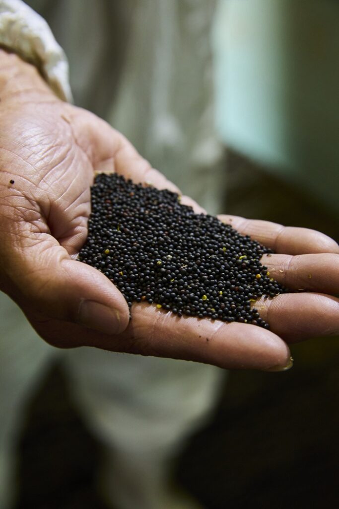 なたねとは、いわゆる菜の花が咲いたあとに実る種子で、約40%が油分。その油を搾ります。「なたね油の一番搾り」と聞いても、製法まで知る方は少ないかもしれません。二番、三番搾りもあるのでしょうか。