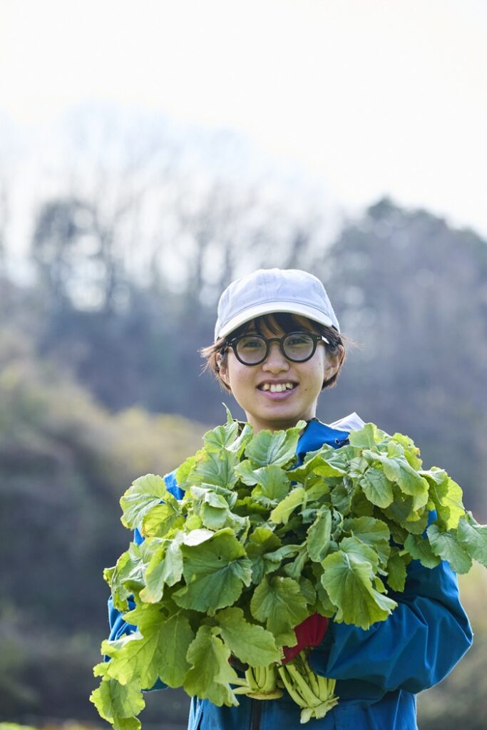 「大根はいつ植えてどの時期がおいしいのかも最初は知らなかったんです。食べ物って当たり前にあるものではなくて、必ずだれかが作ってくれているもの。それを分かって食べたいなと思います。自分がここで作物を育てることで、東京の家族や友人が産地に目を向けてくれる。そんなつながりから、農業が身近な存在になればいいと感じています」