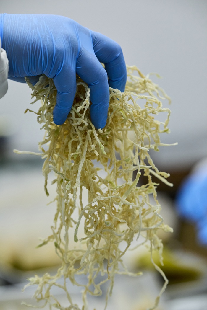 そんなてんぽ印が2011年から「有機野菜を常備菜に」と送り出しているのが乾燥野菜。今や11種類にも及び、「柑橘だけではない」無茶々園のもうひとつの顔となっています。その中から大地を守る会で取り扱うのが『無茶々園の有機天日切り干し大根』。原料は「普通に食べてもおいしい大根」を有機栽培、乾燥は天日干しと、素朴な一袋にたくさんの手間が詰まっています。