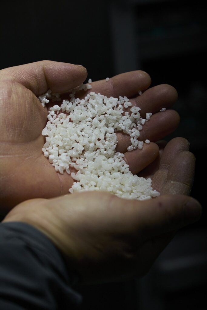 直接飲む日本酒がすっきりとした味わいを目指すのに対し、料理酒は素材と合わさって初めて完成するもの。だからこそ、米の持ち味を残す方向で造るのだといいます。大地を守る会の旧・料理酒は精米歩合65%でしたが、新しいものは80%へ。より料理酒らしい〝うまみの厚み〞を求めて辿り着いた精米歩合です。