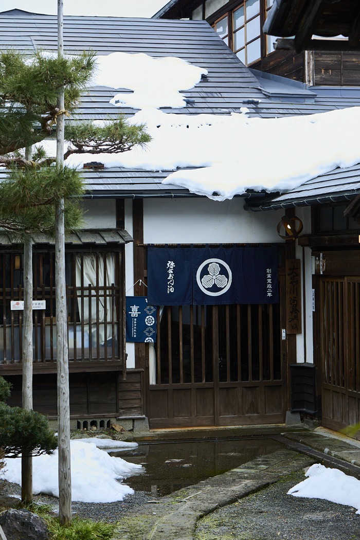 郡山駅から西へ向かう磐越西線に揺られること2時間。「磐梯熱海を過ぎると雪国だからね」。そんな声が聞こえるころ、車窓からの眺めは趣を変え、やがて一面の雪景色に変わりました。雪原と冬木立が続くモノクロームの世界を抜けると、大和川酒造店のある喜多方の町が現れます。私たちが訪ねたのは、春の足音がまだ遠い2月初旬。しんとした冷気が町を包み、酒蔵では新しい料理酒の仕込みが始まっていました。