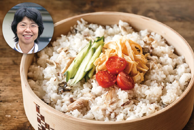 「ごはんとあじの開き、普段の食事の材料なのですが、ちらし寿司にするだけで、みんなでつまめるパーティーメニューになります。あじを焼いてから混ぜるのがポイント。ぱりぱりした皮も入れて香ばしく仕上げます」