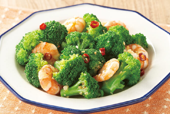 ブロッコリーはゆで上がった後に水にさらすと食味が落ちるので、ザルに上げて冷まします。