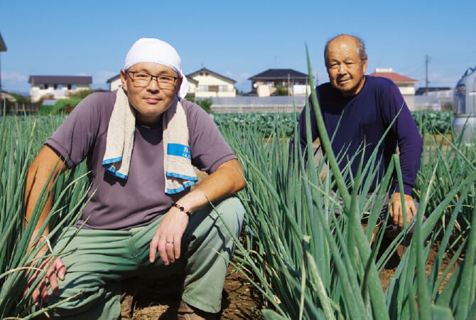 私たちの畑がある、埼玉県深谷市のブランドねぎが旬の盛りです。冬に向かって何度も土寄せという、土を作物の株元に寄せる作業をして、白い部分を伸ばします。育てているのは「農研2号」という昔ながらの品種。根本から葉先までやわらかく、加熱するととろりとした食感になるのが特徴です。