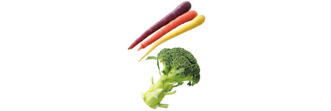 色とりどりの有機人参と、芯まで甘く濃い緑色のブロッコリーのセット。サラダに加えればパッと食卓が華やぎます。クリスマスや年末年始におすすめです。