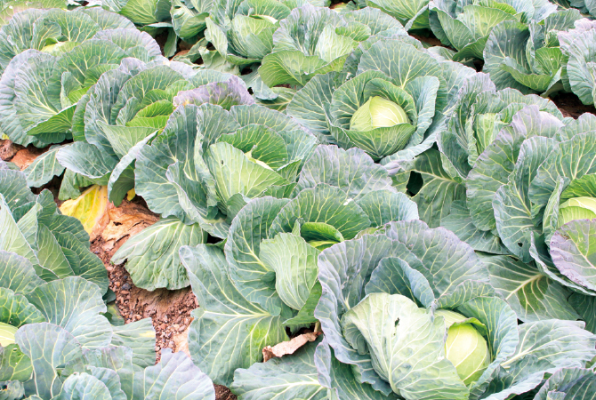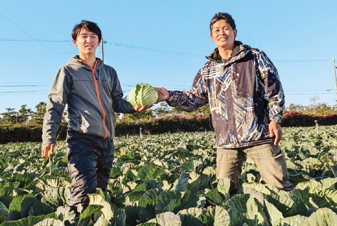 渥美半島は三方を海に囲まれ、暖流の影響で冬でも温暖な気候に恵まれる土地。暖かい陽気と、冷たい伊吹おろしが組み合わさることで野菜が甘く、おいしく育ちます。とくに、一段と寒さが増す1月はキャベツの甘みもぐ~っと増す時季。葉も肉厚になり、ずっしりと重みがあります。