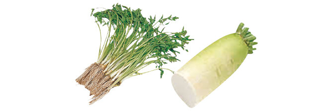 根までおいしいセリと、みずみずしい大根のセット。ほろ苦さと清涼感のあるせりは汁物にも、鍋にも合います。