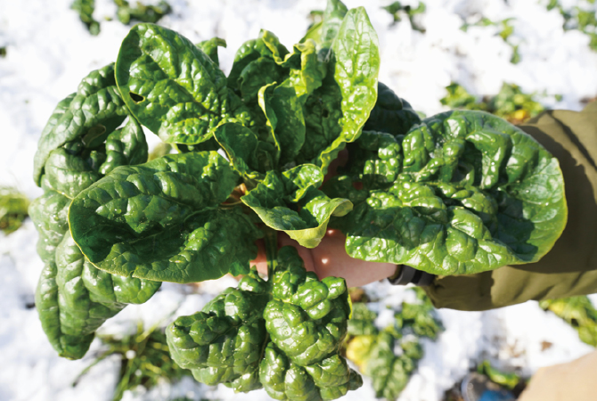 寒さが一段と深まり、露地栽培の野菜は甘さのピークを迎えています。甘みたっぷりの寒ちぢみほうれんそうは、葉の表面に縮んだようなシワが入っている、ほうれんそうとは思えないユニークな見ためが特徴です。葉は厚みがあり味が濃い! 食べごたえがあります。