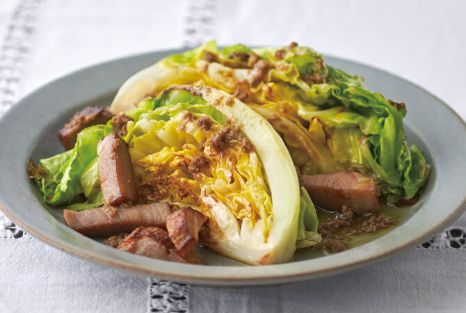 今の時季のキャベツはふわりとやわらかに巻いた葉が特長。一枚一枚がみずみずしく、甘みがしっかりあります。