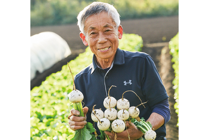 春のサラダかぶの生産者、三枝晃男さん(埼玉県志木市)